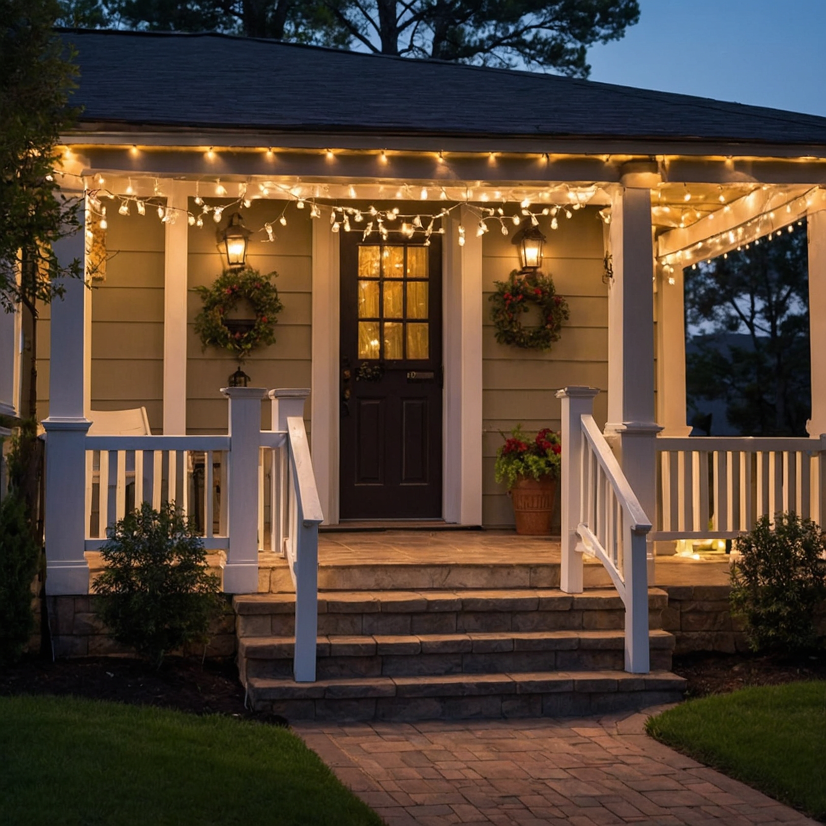 There’s something magical about the warm glow of string lights draped along rooflines and wrapped around porch columns. They’re simple, yes, but oh so effective! Pro tip: mix white and colored lights for a playful twist on this timeless favorite.