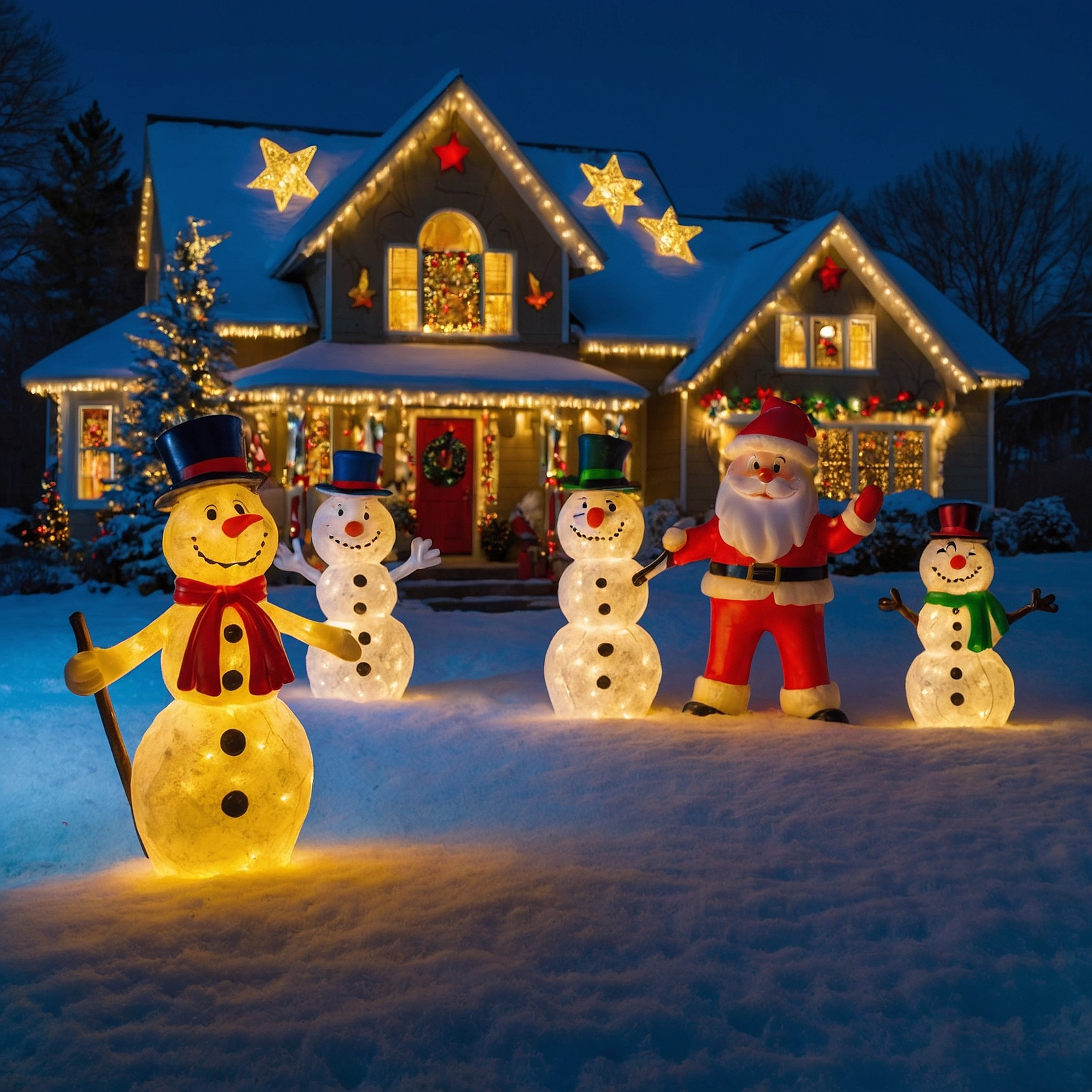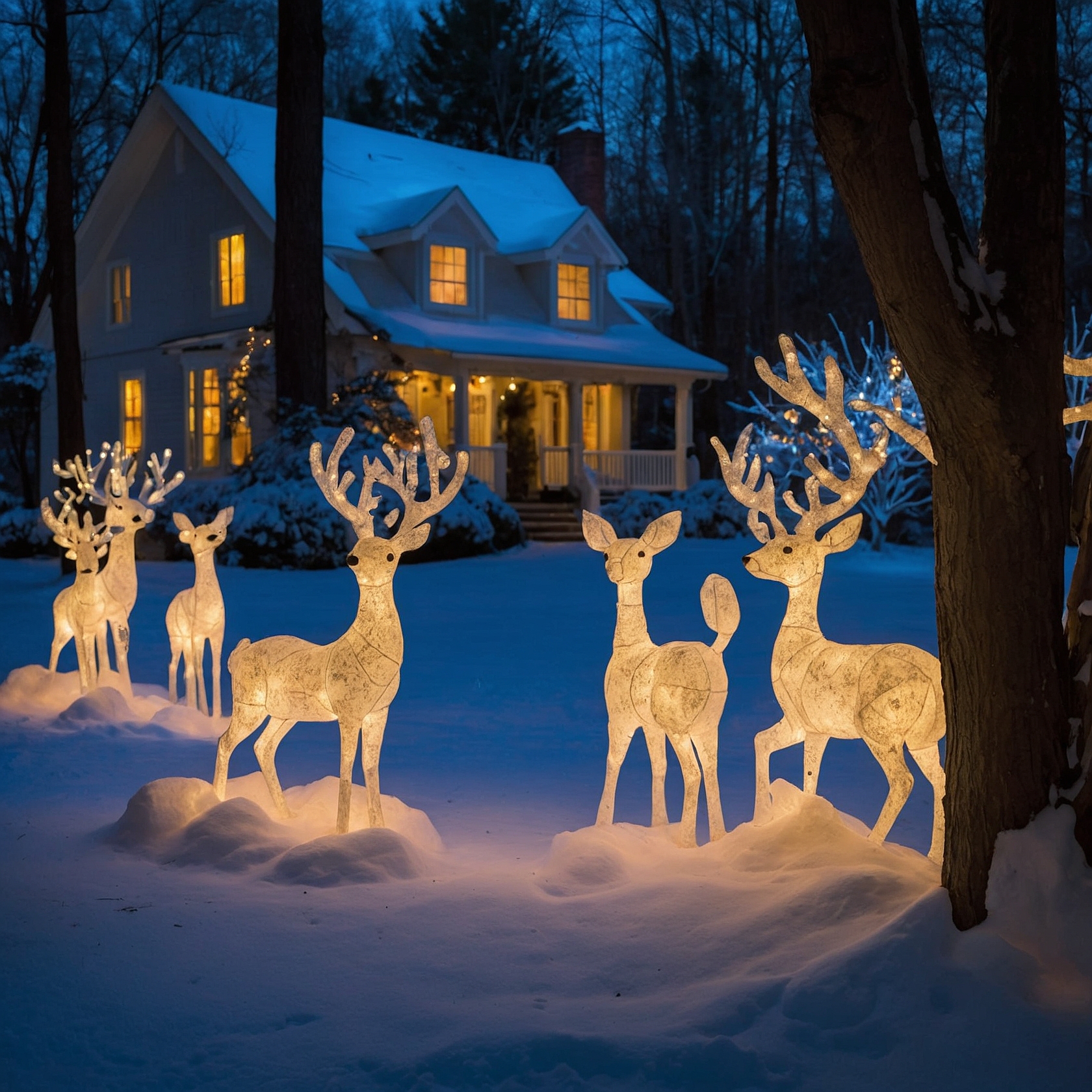 Light-up animal shapes or abstract forms add whimsy to your yard. A family of glowing deer or a collection of illuminated snowmen create a magical woodland scene. It’s like having your own enchanted forest!