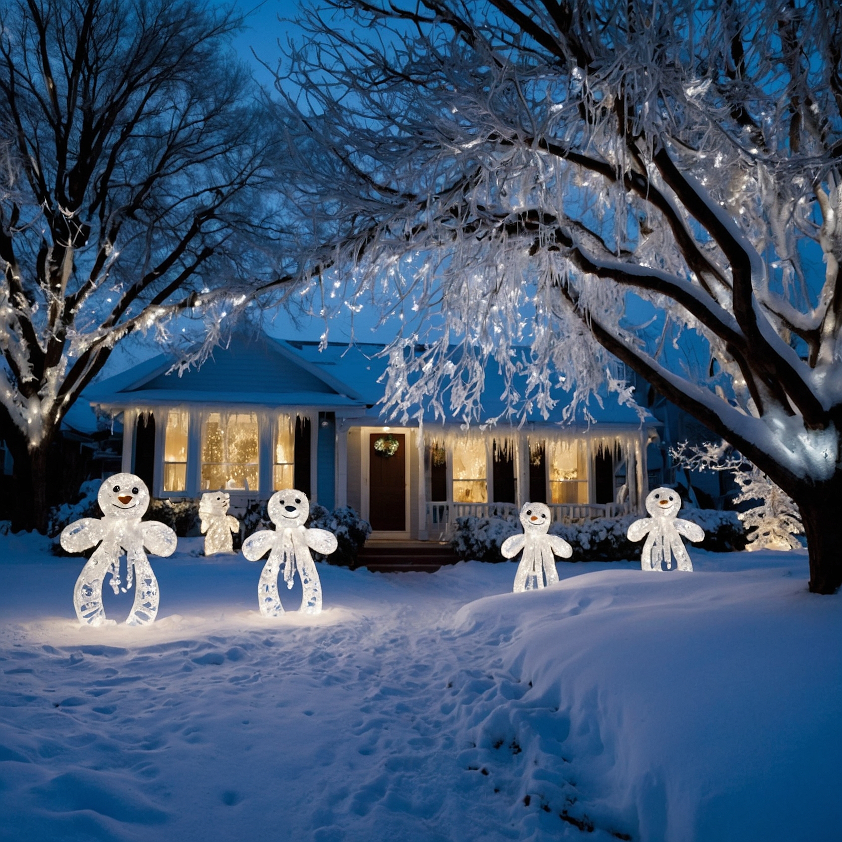 Transform your yard into a snowy paradise with cool white lights, illuminated snowflakes, and glowing icicles. Add some light-up polar bears or penguins for extra charm. Suddenly, your home in sunny Florida feels like the North Pole!