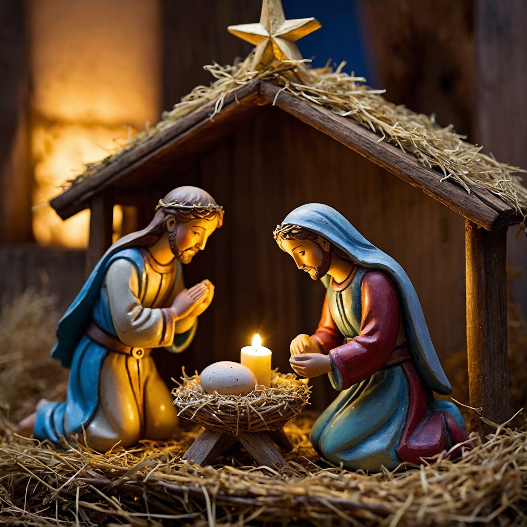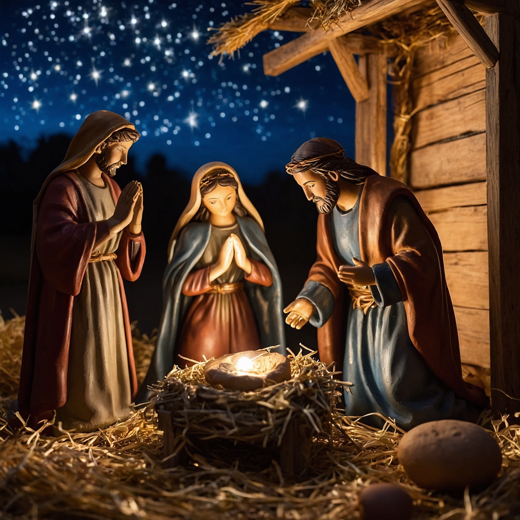 For those who prefer a more traditional approach, a beautifully lit nativity scene can be the centerpiece of your display. Use soft, warm lighting to create a reverent atmosphere.