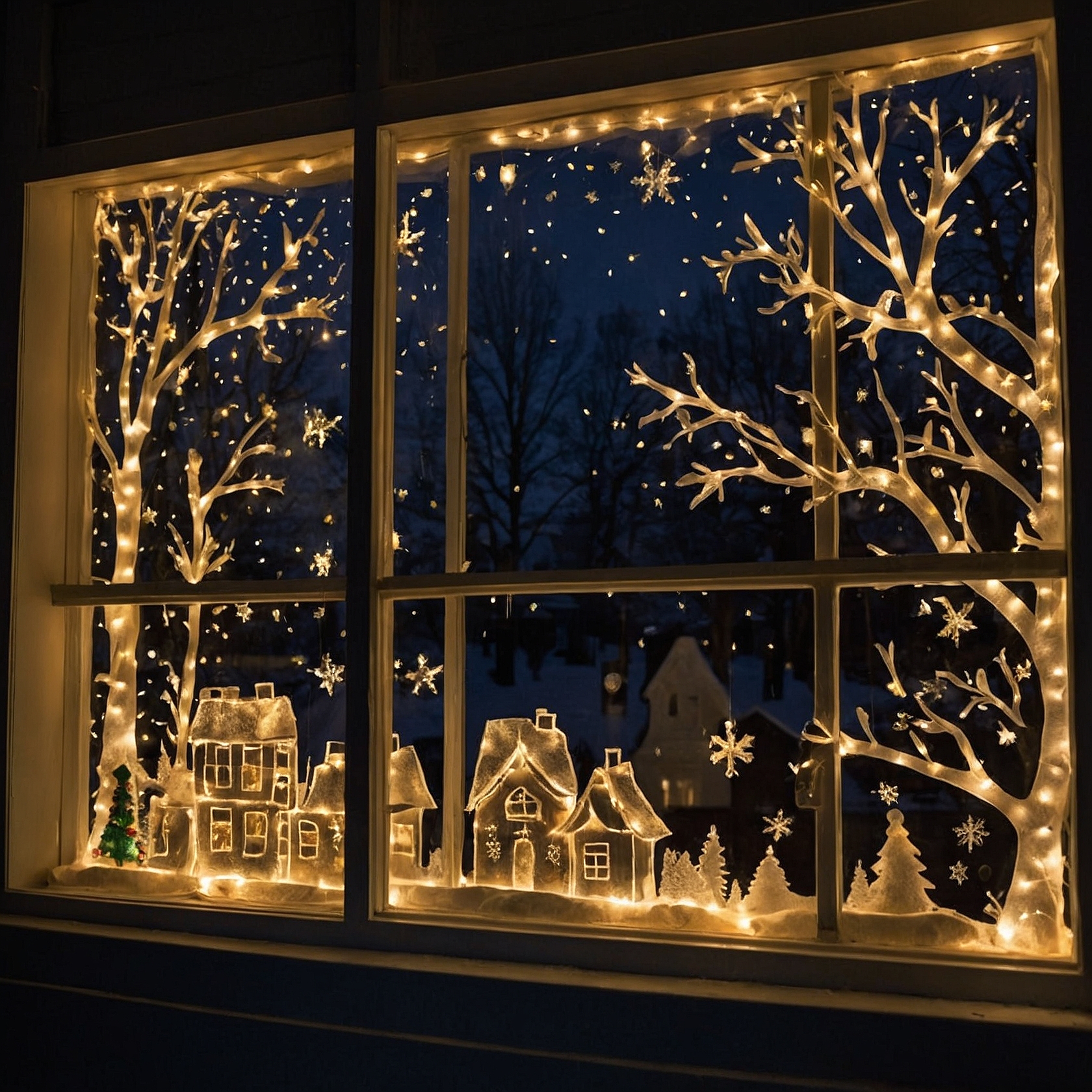 Don’t let your windows be dark spots in your display. Outline them with lights to create a warm, welcoming glow that hints at the cozy interior.