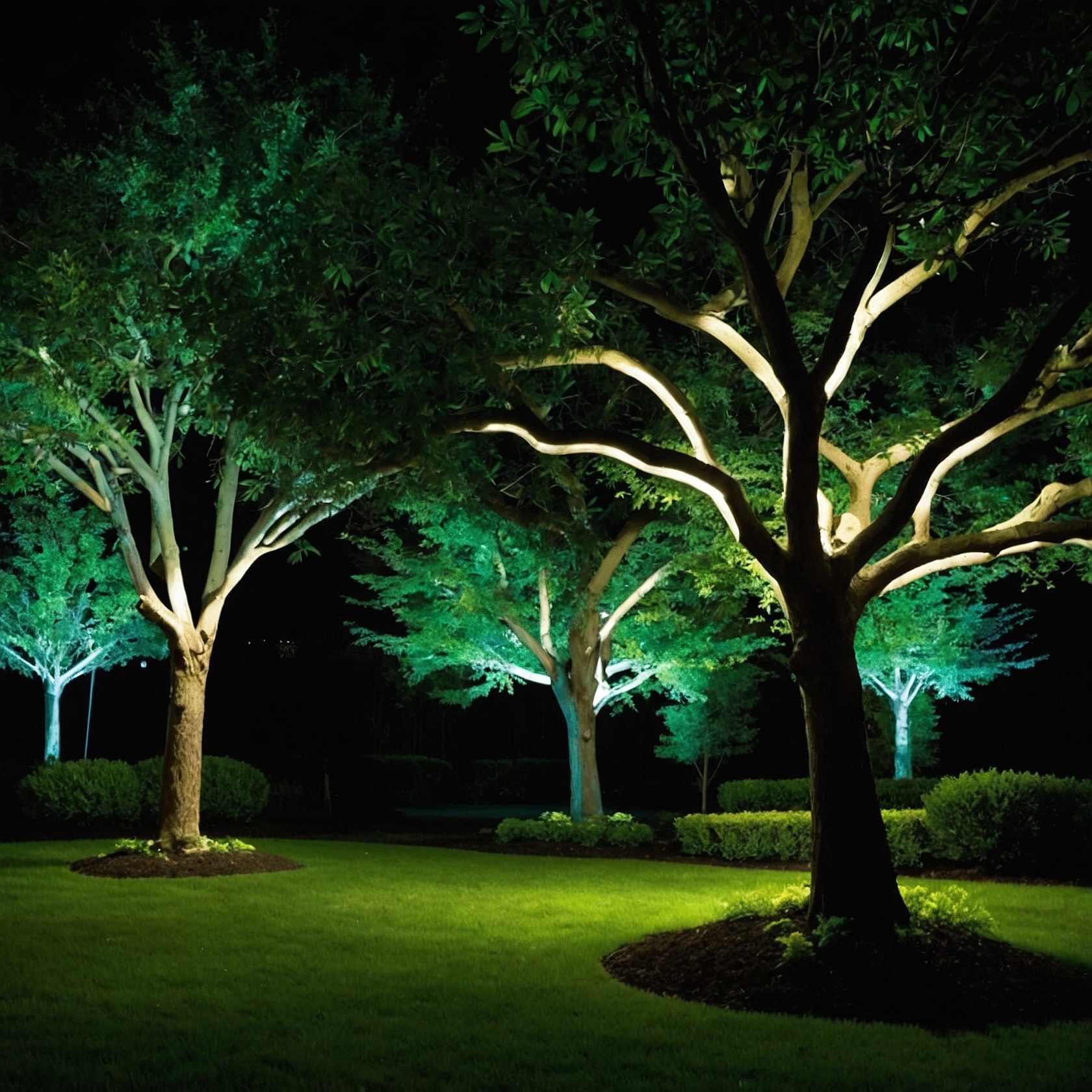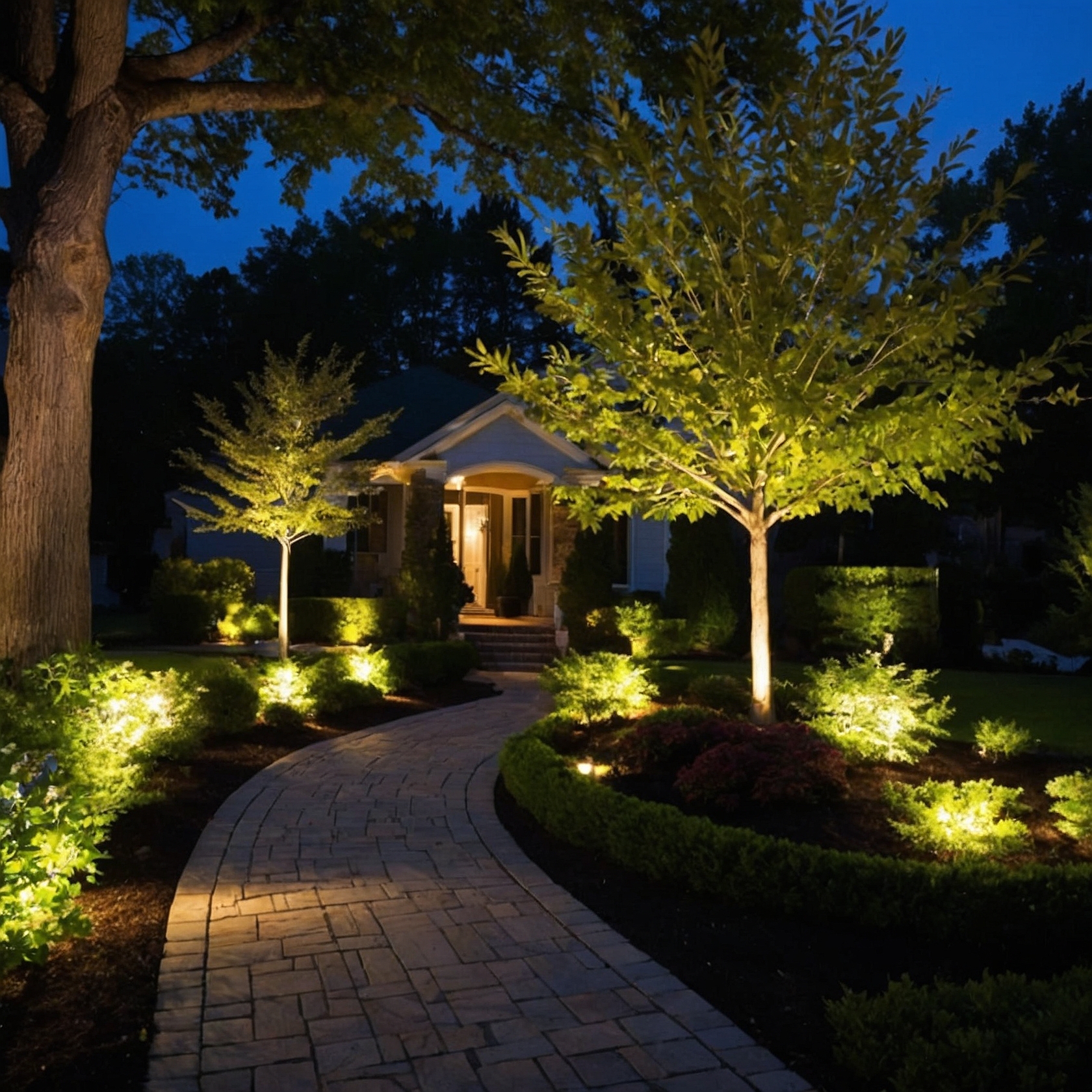 Don’t let the nighttime hide your beautiful landscaping. Use ground-based lights to illuminate trees and shrubs from below, creating dramatic shadows and highlighting their shapes.