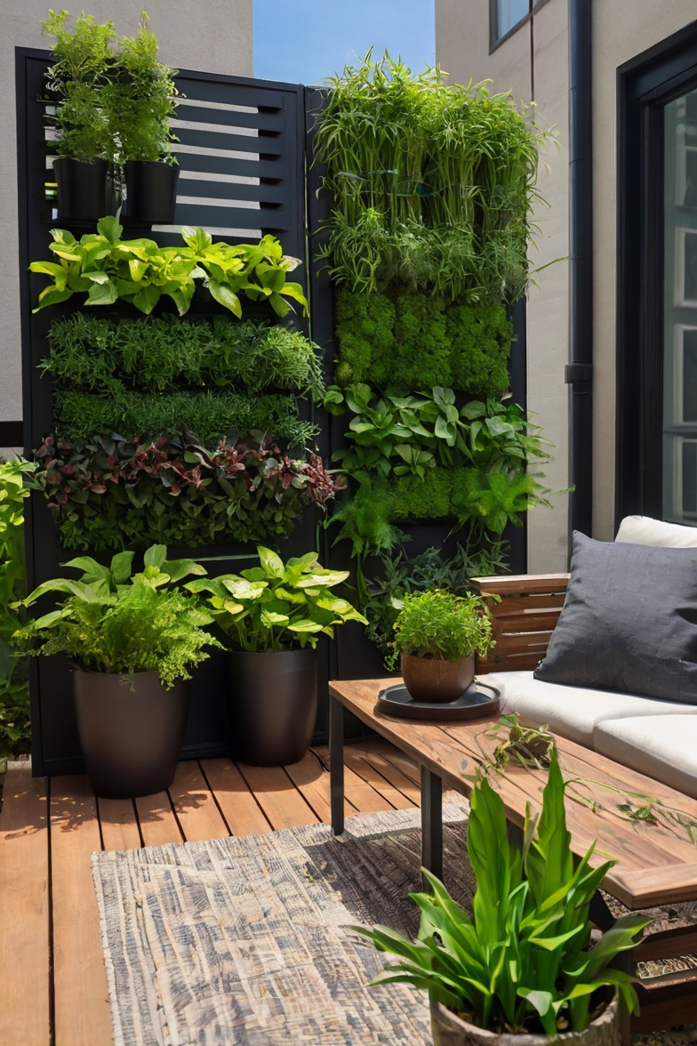 One popular option is creating a vertical garden wall. Not only does it look stunning, but it also serves as a natural privacy screen. You can use specially designed vertical planters or get creative with DIY solutions like repurposed pallets or pocket organizers.