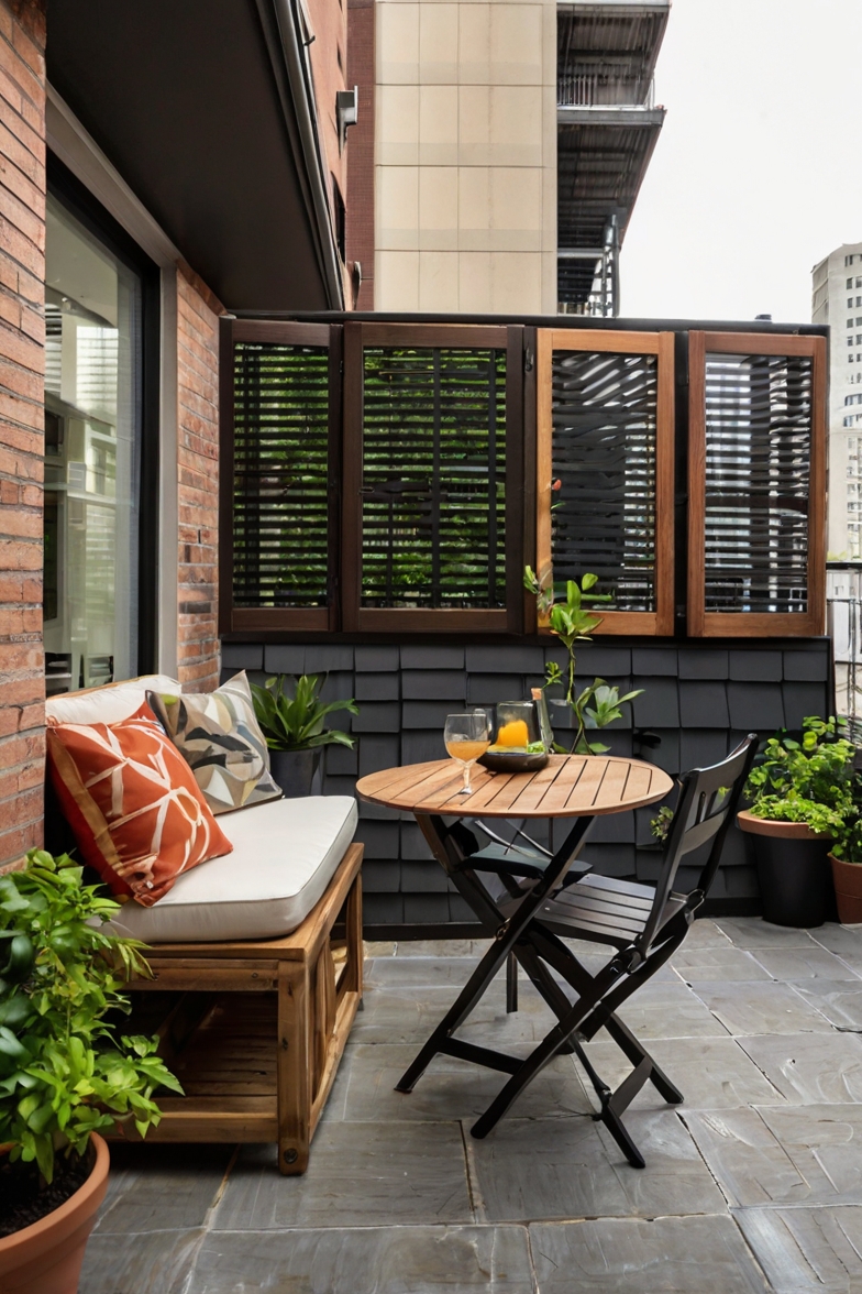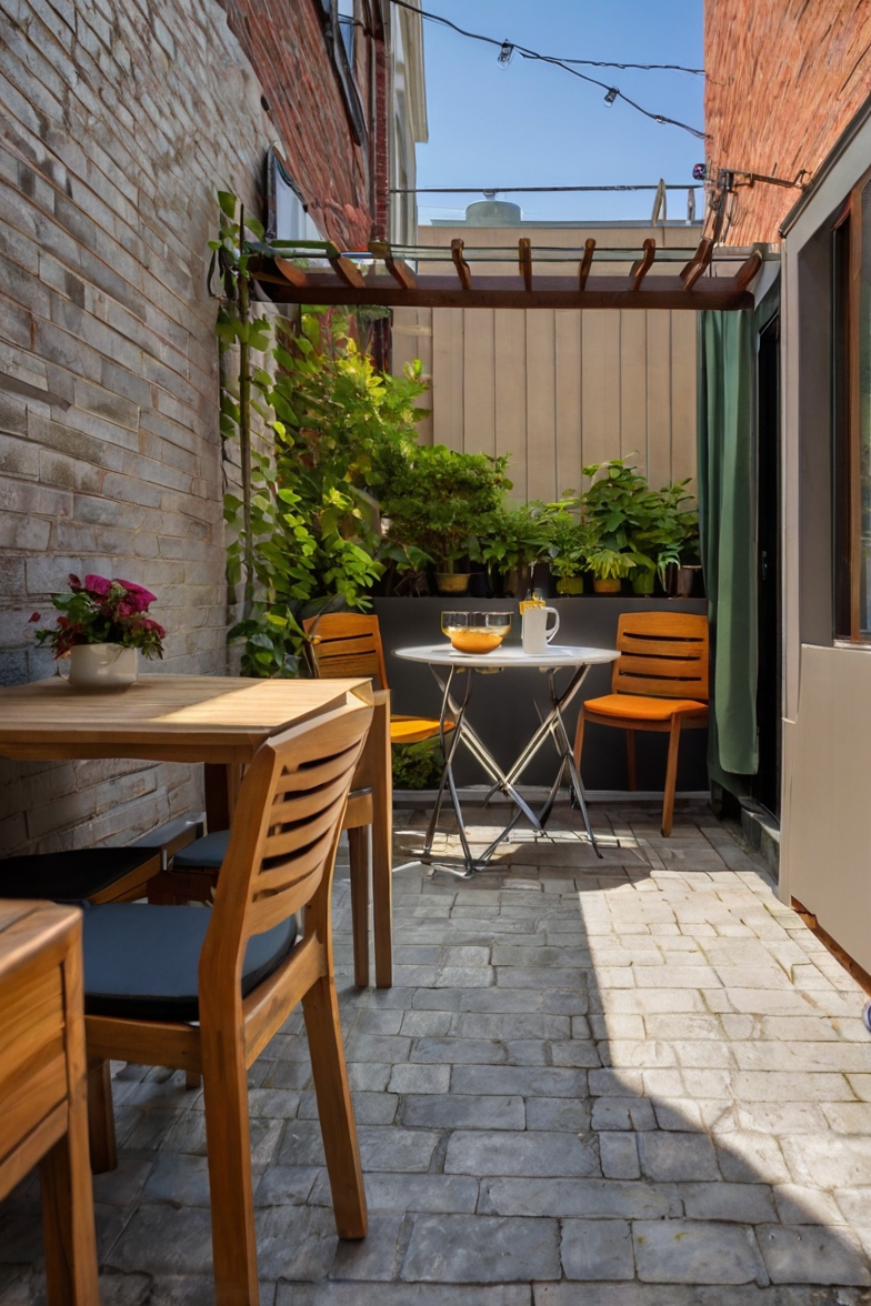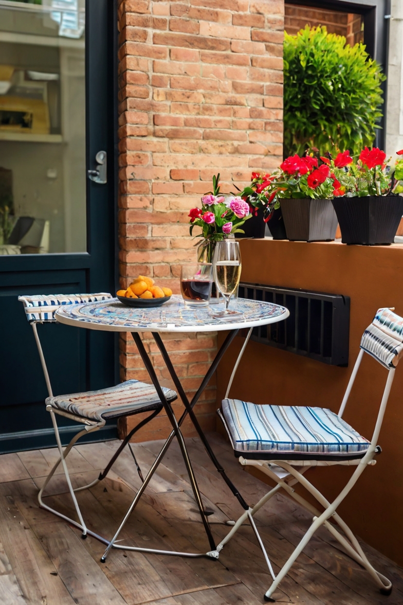 A bistro set is another classic choice for small patios. Look for one that folds flat against the wall when not in use. This way, you can enjoy outdoor meals without permanently dedicating space to a dining set.
