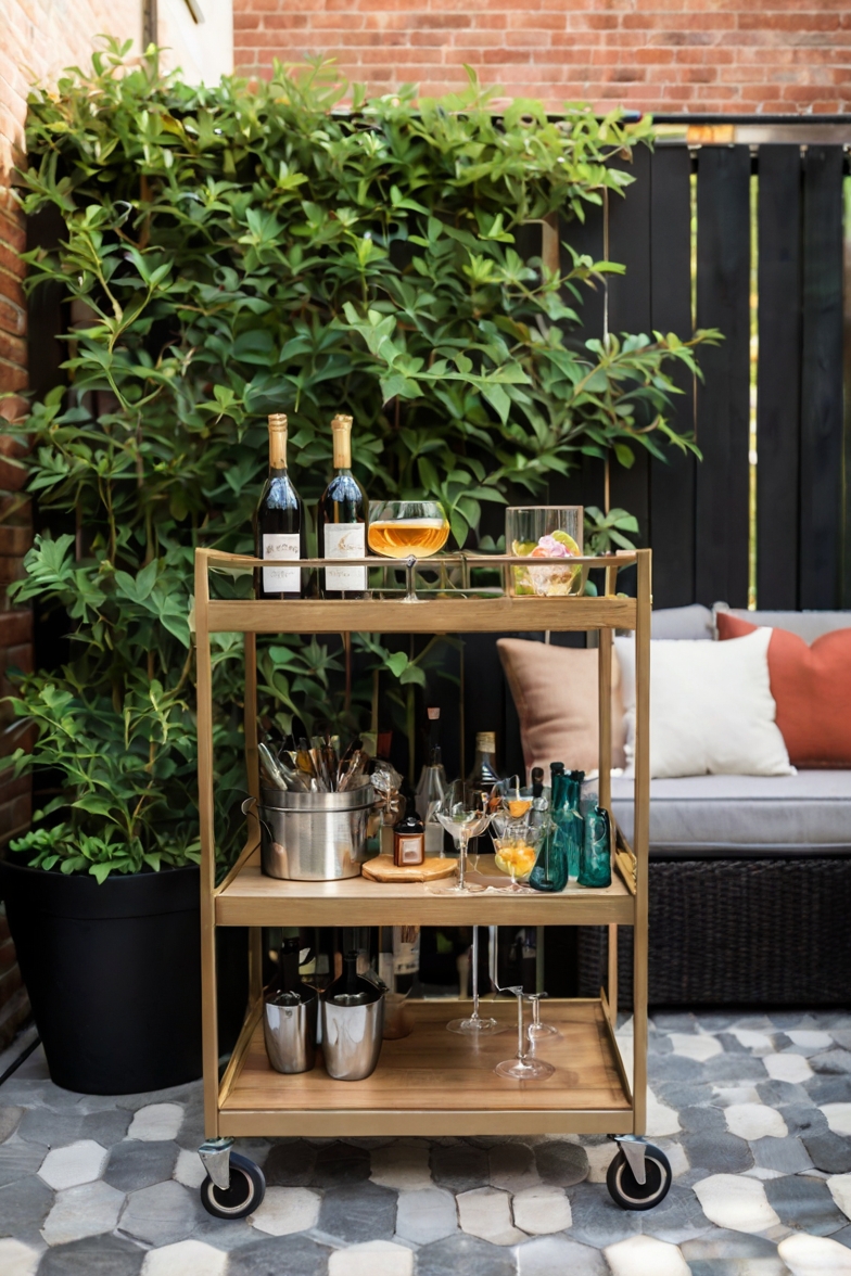 For those who enjoy entertaining, a modern bar cart can be a great addition. It’s mobile, so you can easily move it around as needed, and it adds a touch of charm to your patio.