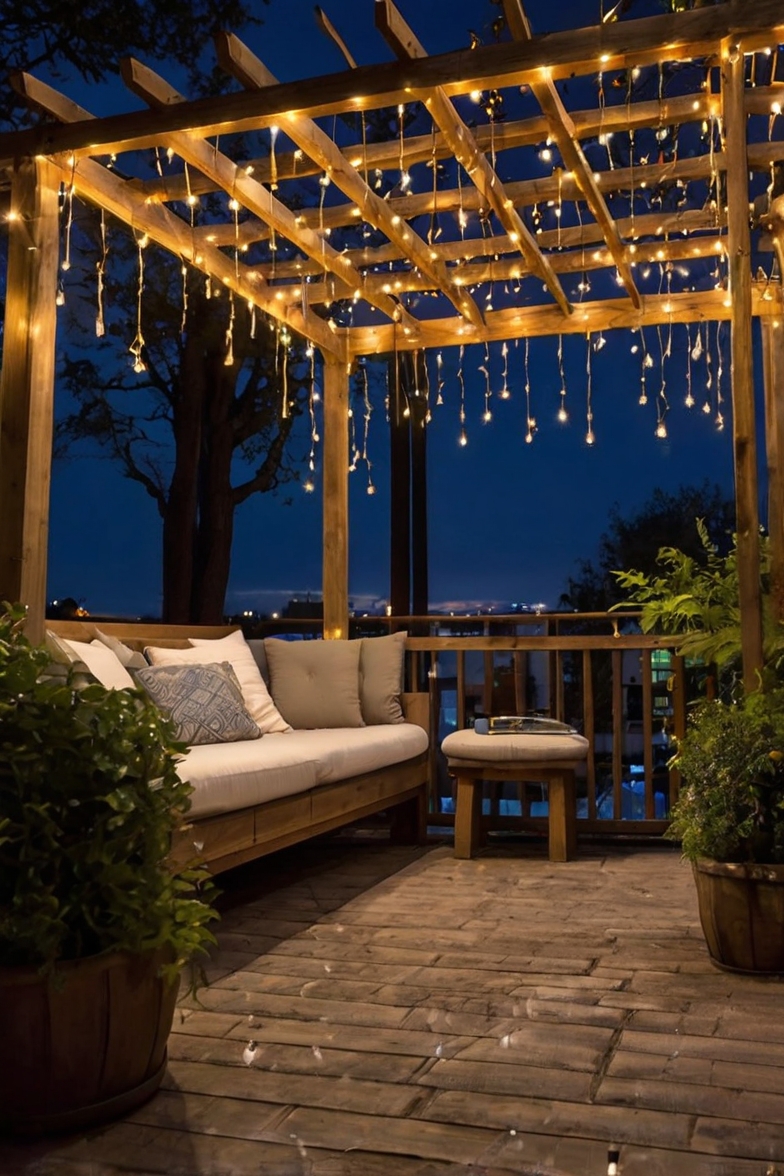 For a more whimsical look, consider fairy lights. These delicate strands of tiny bulbs can be woven through a pergola or draped over plants to create a twinkling, magical effect. They’re especially enchanting when combined with greenery.
