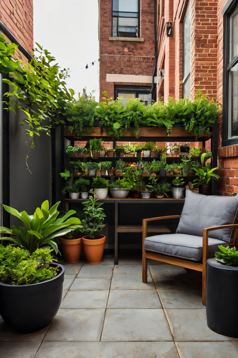 When floor space is at a premium, think vertically! Utilizing your walls and vertical spaces is a great way to add greenery and life to your small patio without cluttering the area.