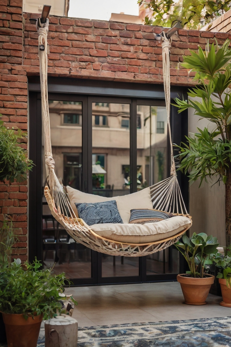 A hanging chair or swing can be a great addition to a small patio. It provides a fun and comfortable seating option without taking up much floor space. Plus, the gentle swaying motion can be incredibly relaxing after a long day.