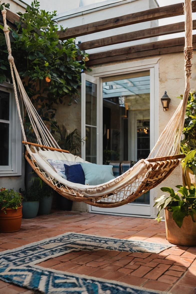 If you have two sturdy points to attach it to, a small hammock can bring a touch of vacation vibes to your patio. It’s perfect for afternoon naps or reading a good book. Just make sure it’s properly secured and can handle the weight.