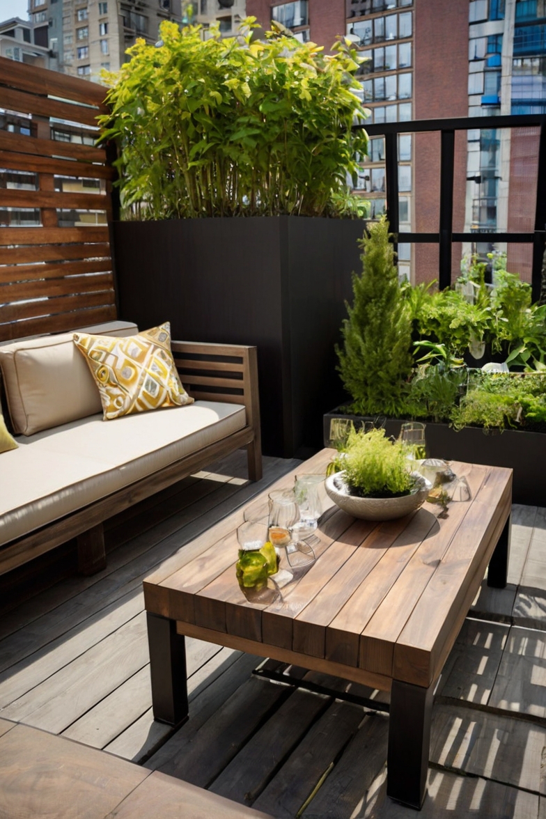 Styling tip: Use lightweight, movable planters to create privacy and define different areas of your rooftop oasis.